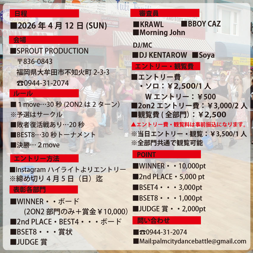 こちらは『Palm City Break Battle 2026.04.12』のエントリー・前売りチケットとなります。